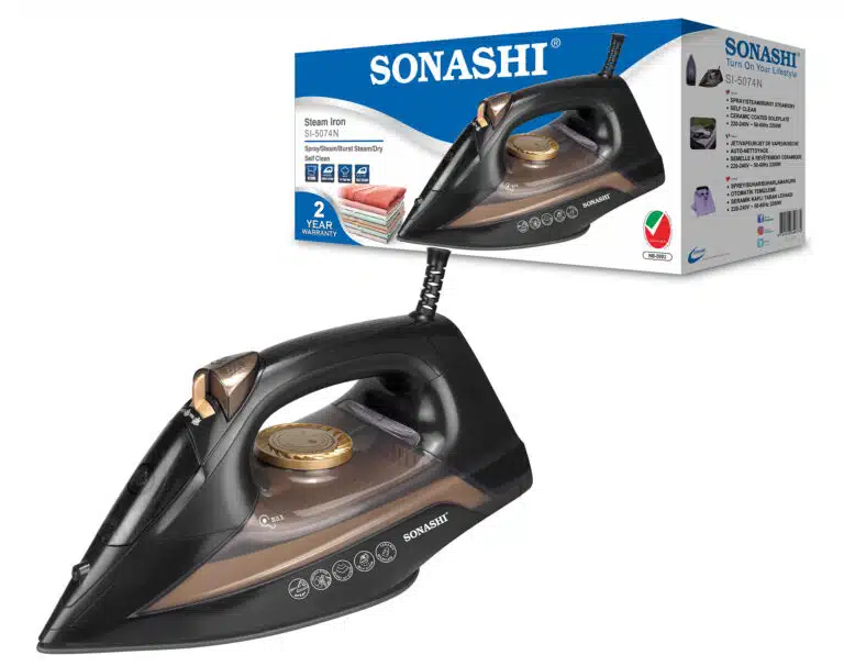 اتو بخار سوناشی SL-5074N با طراحی مدرن و امکانات پیشرفته، تجربه اتوکشی راحت و سریع را برای شما فراهم می‌کند. کفی سرامیکی مقاوم، عملکرد بخار متنوع و قابلیت رسوب‌زدایی خودکار، این اتو را به انتخابی مطمئن برای مصارف خانگی تبدیل کرده است.