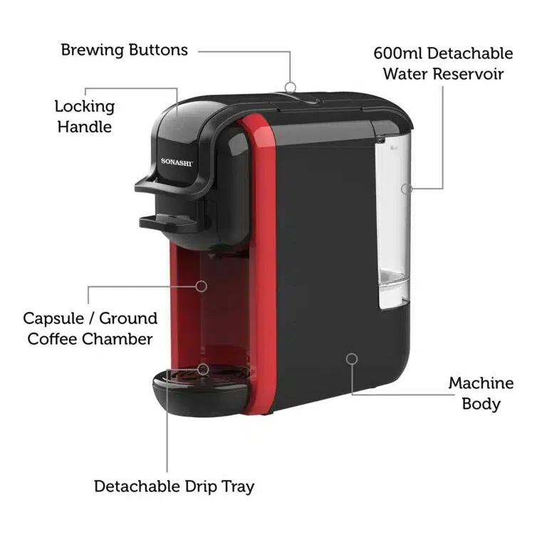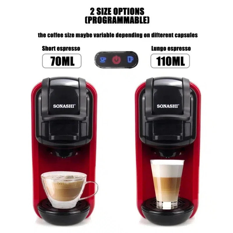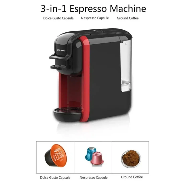 اسپرسو ساز سوناشی SCM-4969 یک دستگاه سه‌کاره خانگی است که امکان تهیه قهوه پودری، کپسولی و دولچه گوستو را فراهم می‌کند. این محصول با طراحی مدرن و جمع‌وجور، تجربه‌ای راحت و سریع از تهیه قهوه را برای افرادی که زمان محدودی دارند، ارائه می‌دهد.