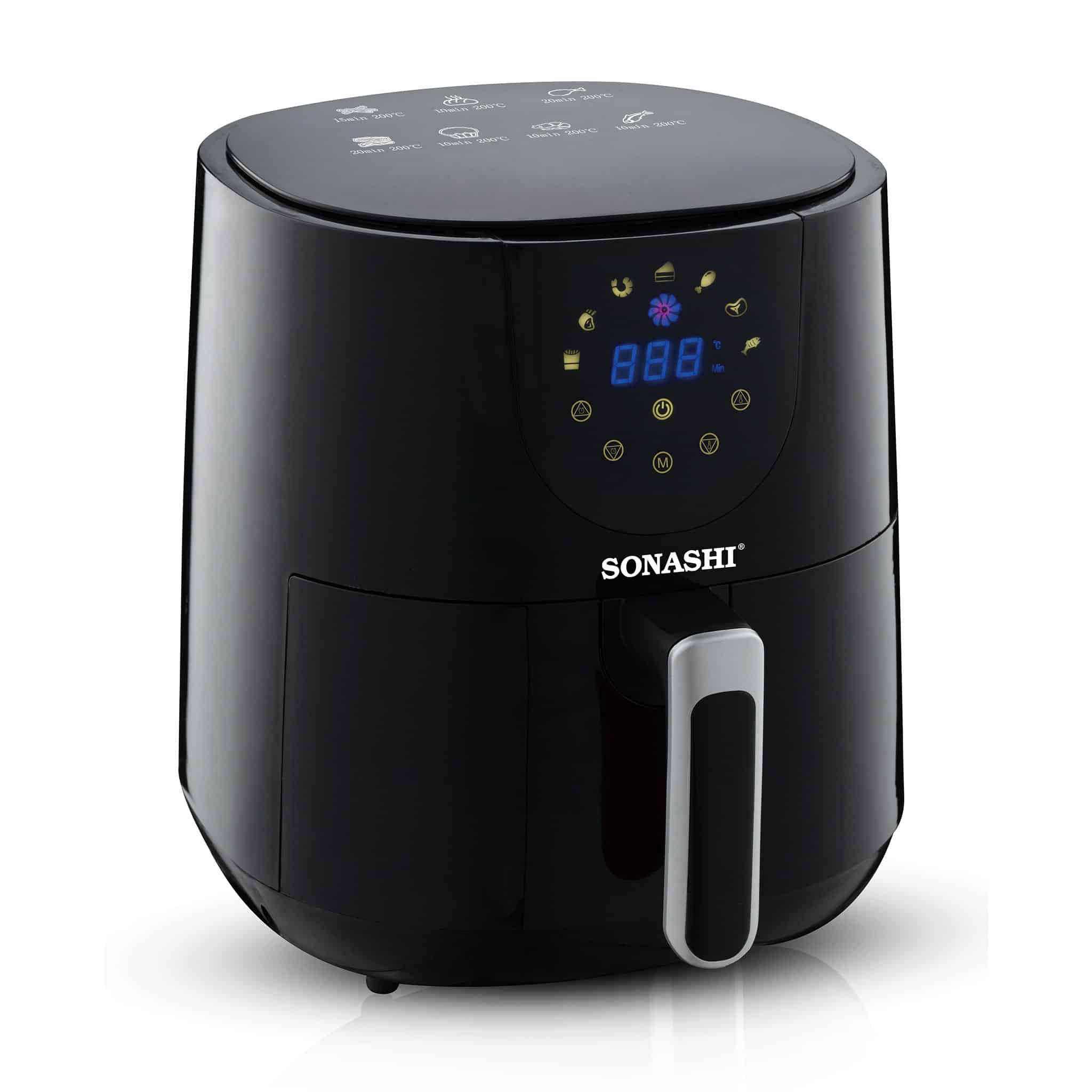 سرخ‌کن سوناشی SAF-420 با ظرفیت 4.2 لیتر و فناوری گردش هوای سریع 360 درجه، تجربه‌ای سالم و خوش‌طعم از سرخ‌کردن را برای شما به ارمغان می‌آورد. این محصول مجهز به صفحه لمسی دیجیتال و کشوی شفاف است که کنترل فرآیند پخت را آسان می‌کند.