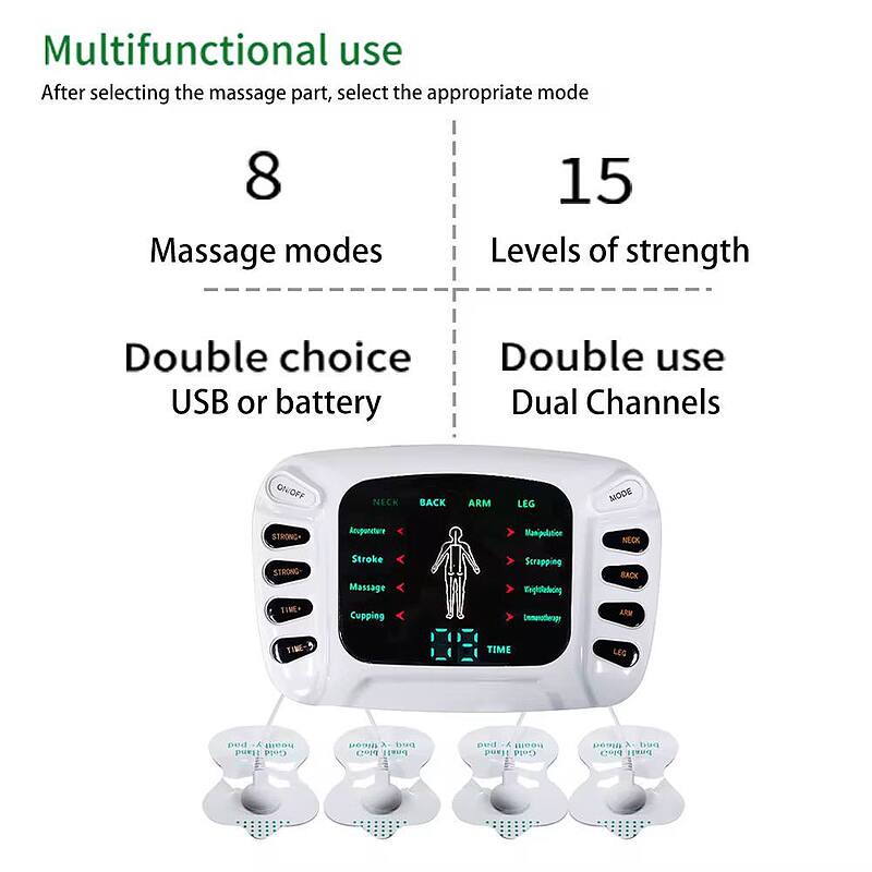 • کاربری راحت: تنها با اتصال پدها به نقاط مورد نظر بدن و روشن کردن دستگاه، ماساژ شروع می‌شود