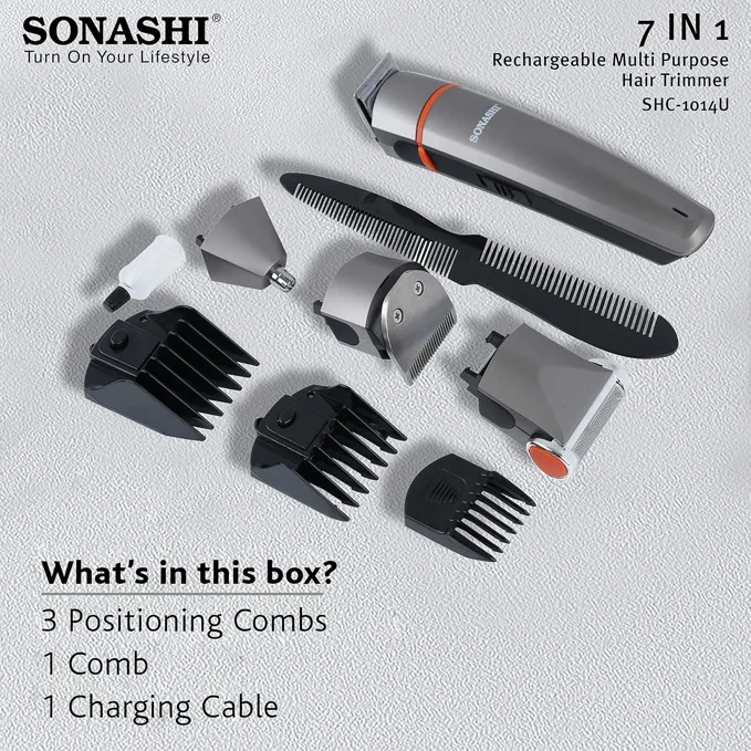 ریش تراش سوناشی SHC-1014U یک دستگاه چندکاره و حرفه‌ای است که برای اصلاح کامل و دقیق طراحی شده است. این محصول با برخورداری از ۷ کاربری متنوع، نیازهای شما را برای اصلاح مو، تریمر دقیق، موزن گوش و بینی، اصلاح ابرو و استفاده از شیور کوچک برطرف می‌کند.
