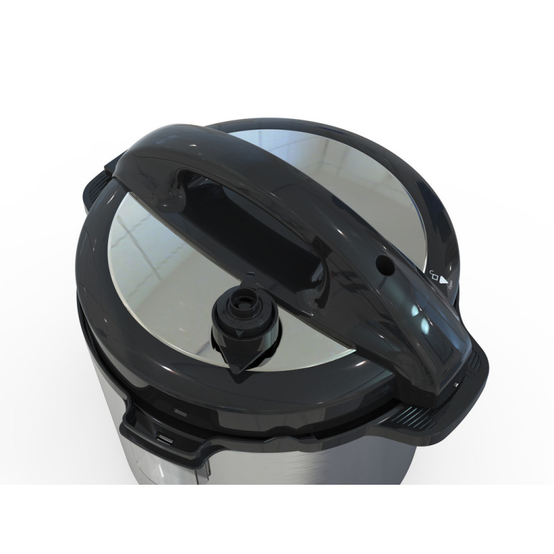 زودپز SPC-801D با بدنه استیل ضدزنگ و ظرف داخلی تفلون نچسب، ترکیبی از دوام، زیبایی و سهولت در نظافت را ارائه می‌دهد. طراحی جمع‌وجور و وزن مناسب آن، حمل و جابجایی را آسان کرده است. صفحه نمایش LED به شما کمک می‌کند تا به‌سادگی تنظیمات پخت را مشاهده و مدیریت کنید.