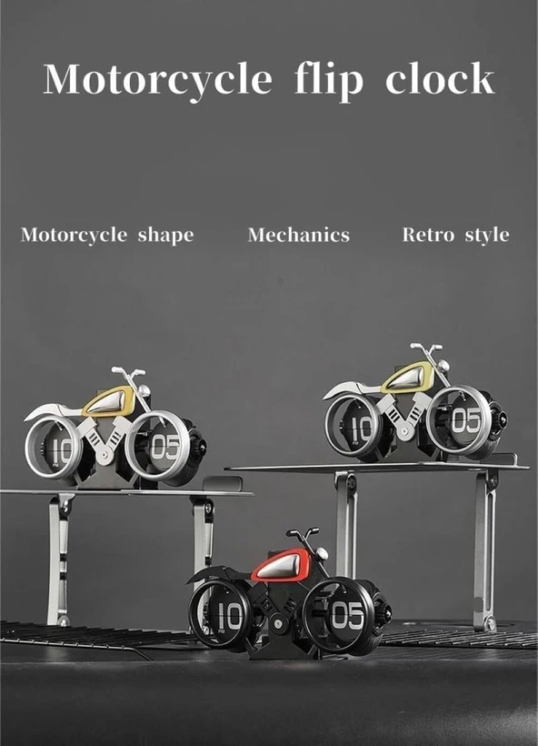 ساعت رومیزی Flip Clock MotorCycle F116 با طراحی جذاب و نوآورانه، ترکیبی از دکوراسیون مدرن و عملکرد کاربردی است. ظاهر شبیه به موتور سیکلت و ورقه‌های ورقی ساعت، جلوه‌ای خاص به فضای میز شما می‌بخشد.