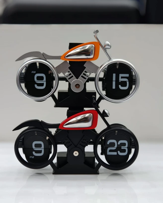 ساعت رومیزی Flip Clock MotorCycle F116 با طراحی منحصر به فرد موتور سیکلت و مکانیزم فلیپ، ترکیبی از زیبایی نوستالژیک و عملکرد دقیق را ارائه می‌دهد. این ساعت با ورق خوردن صفحات به صورت بی‌صدا، تجربه‌ای متفاوت از نمایش زمان ایجاد می‌کند که در هیچ ساعت دیجیتال یا عقربه‌ای مشابه آن یافت نمی‌شود.