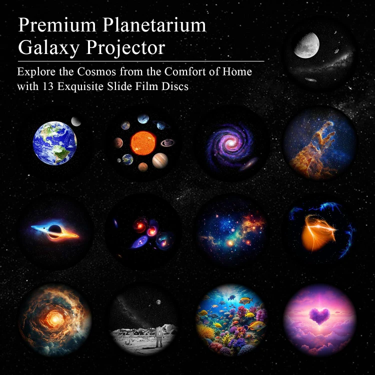 • نمایش کهکشان و ستارگان: پخش تصاویر شگفت‌انگیز روی سقف و دیوار با 13 دیسک مختلف