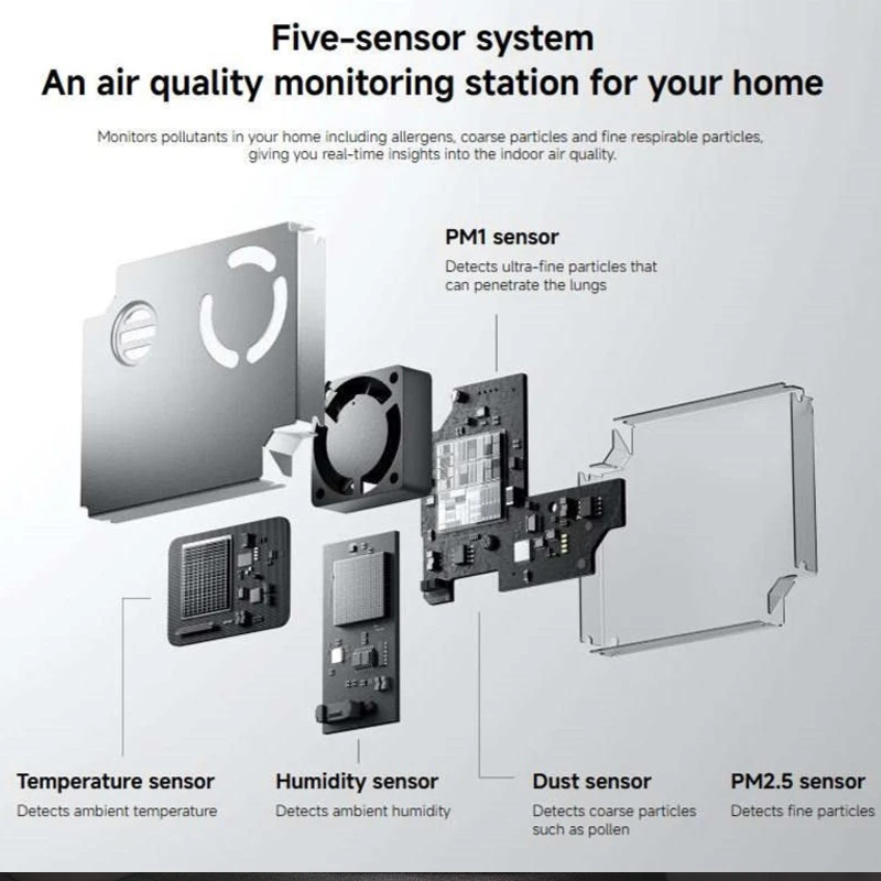 این مدل به حسگرهای PM1، PM2.5، ذرات، دما و رطوبت مجهز است که کیفیت هوا را در زمان واقعی پایش کرده و وضعیت نمایش داده‌شده را روی نمایشگر دستگاه یا اپلیکیشن Xiaomi Home نشان می‌دهد. همچنین می‌توانید از راه دور با اپلیکیشن وضعیت هوا را مشاهده، برنامه‌ریزی کنید یا سرعت فن را مطابق با آلودگی هوا تنظیم نمایید.