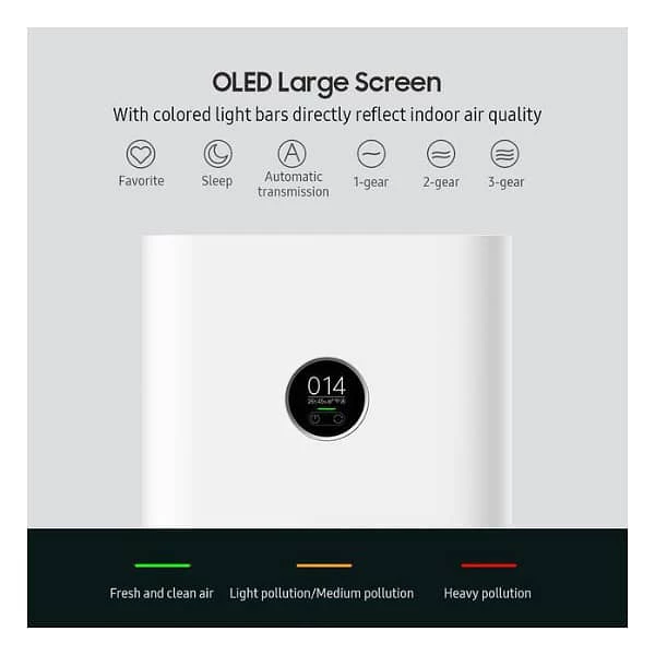این مدل دارای حسگرهای PM2.5 و PM10 است که کیفیت هوا را در زمان واقعی تشخیص داده و اطلاعات را روی نمایشگر OLED یا اپلیکیشن نشان می‌دهد. با اتصال به Mi Home یا Xiaomi Home می‌توانید از راه دور وضعیت هوای محیط را مشاهده و عملکرد دستگاه را کنترل کنید.