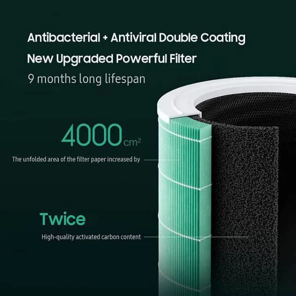 بدنه این دستگاه با طراحی مدرن و مینیمال ساخته شده و بر پایه ورودی هوای ۳۶۰ درجه کار می‌کند تا جریان هوای آلوده را از همه جهات جذب و تصفیه کند. سیستم فیلتراسیون سه‌لایه شامل فیلتر اولیه، فیلتر با راندمان بالا و فیلتر کربن فعال باعث حذف ذرات معلق، بوها و ترکیبات مضر می‌شود، به‌گونه‌ای که تا 99.97٪ ذرات تا اندازه 0.3 میکرون را می‌تواند از هوا جدا کند.