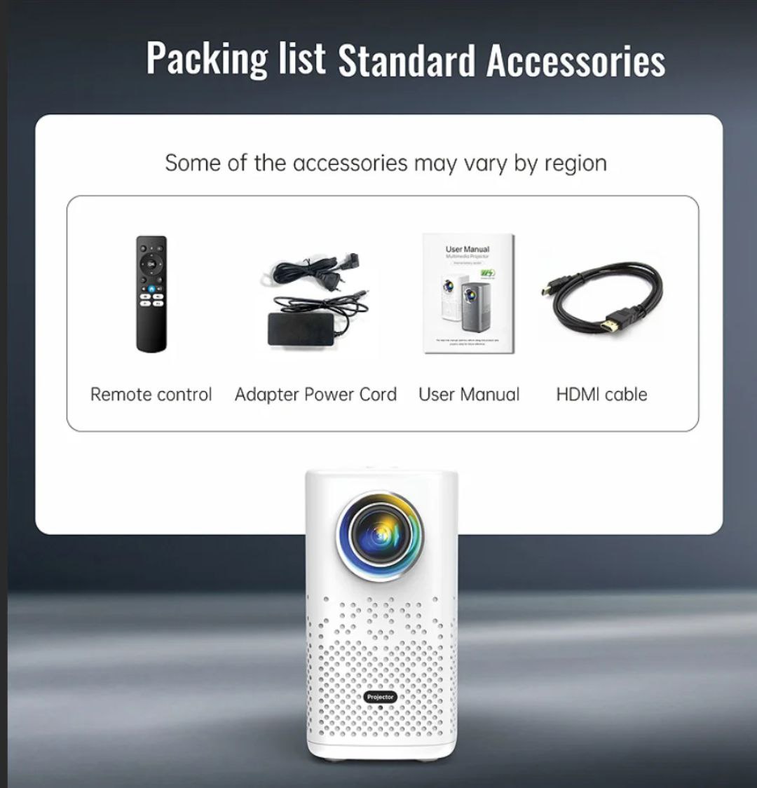 این پروژکتور دارای باتری داخلی قابلشارژ حدود ۳۲۰۰ میلیآمپرساعت است که بسته به میزان روشنایی و نوع استفاده، امکان پخش محتوا را تا حدود ۲ ساعت فراهم میکند. این ویژگی باعث میشود بتوانید در محیطهای بدون برق، مثل سفر یا فضای باز، بهراحتی از آن استفاده کنید.