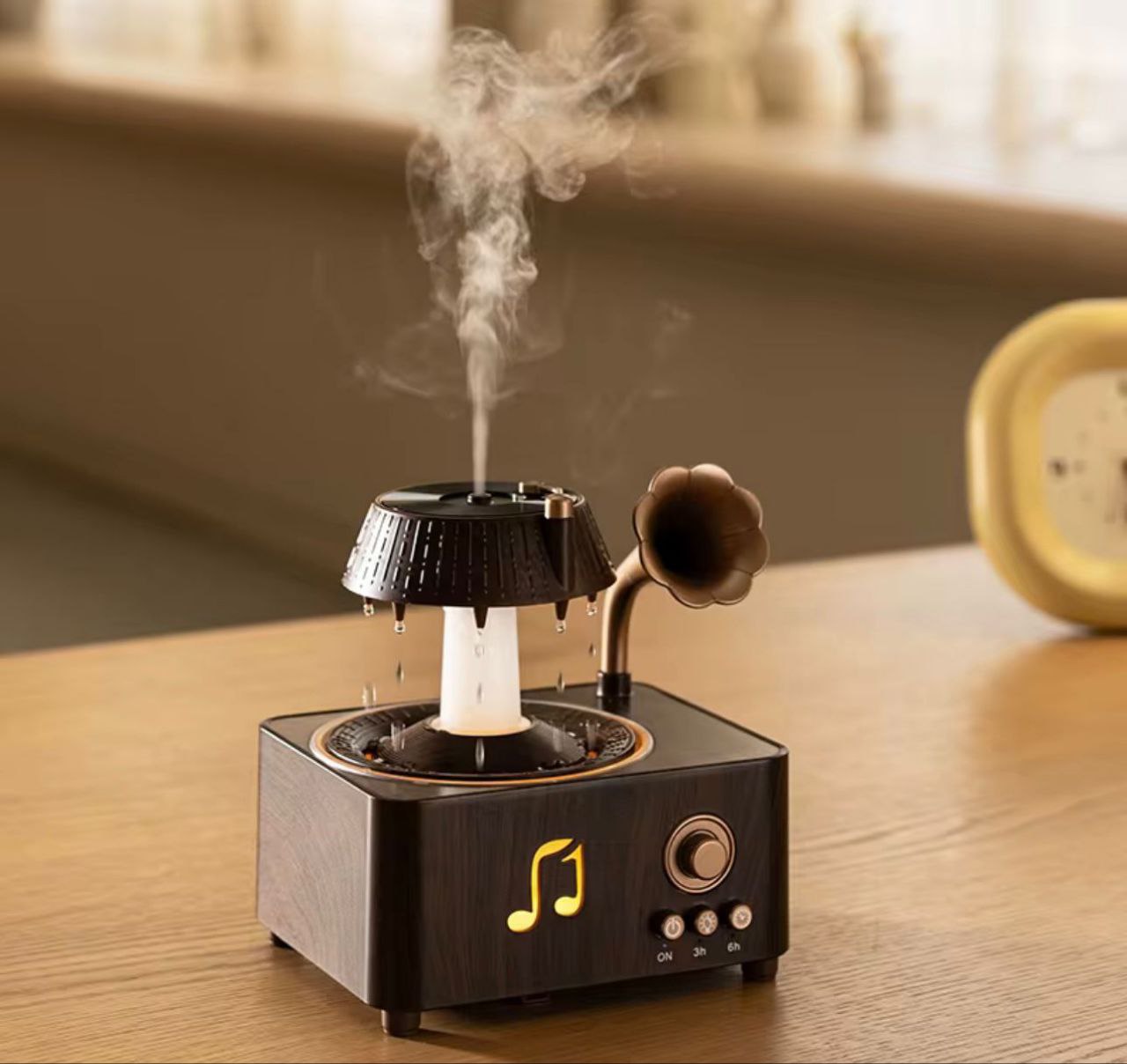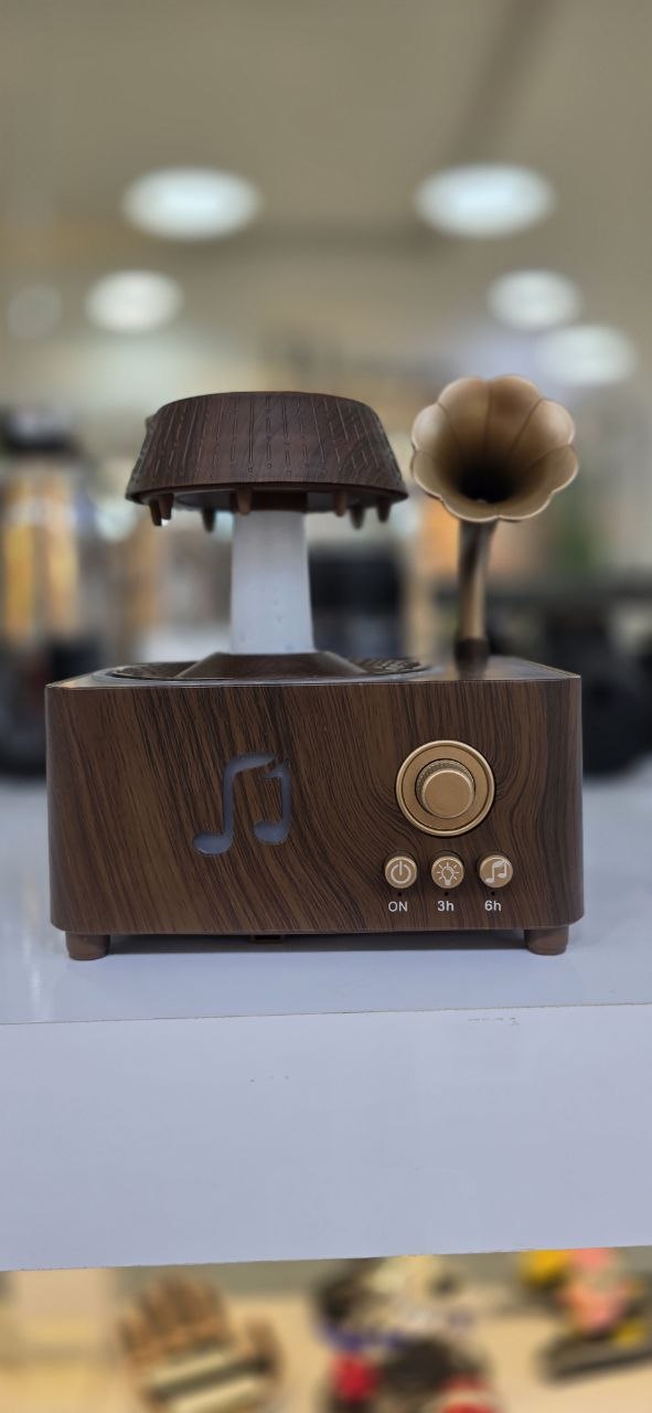 اسپیکر گرامافون باران‌زا مدل V98 یک دستگاه جذاب چندمنظوره است که علاوه بر اسپیکر بلوتوث، قابلیت بخور سرد، نورپردازی خواب و افکت زیبای بارش آب را ارائه می‌دهد. طراحی آن الهام‌گرفته از گرامافون‌های کلاسیک است و جلوه‌ای دکوراتیو به فضا می‌دهد.