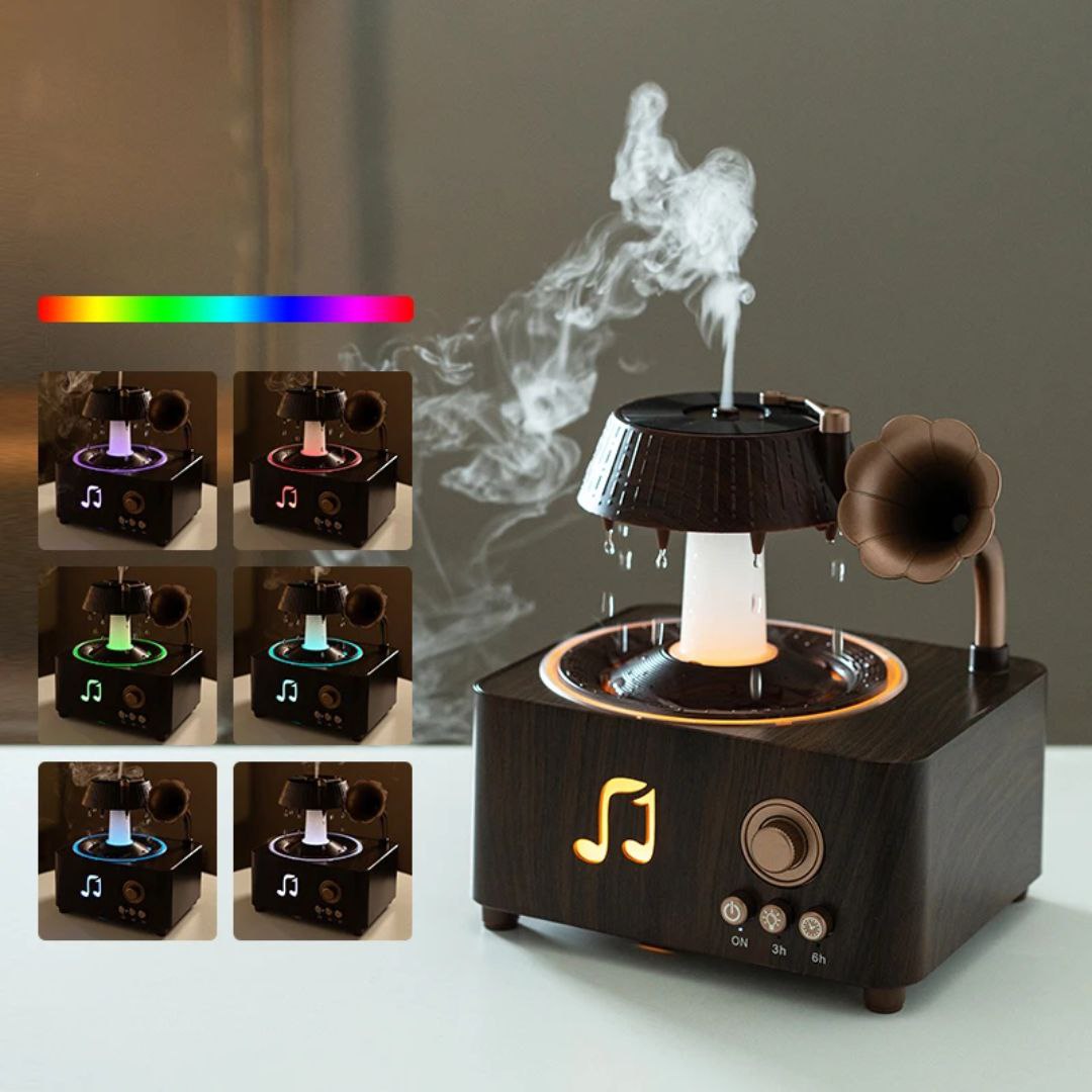 اسپیکر طرح گرامافون باران‌زا V98 یک محصول دکوراتیو و کاربردی است که چندین ویژگی جذاب را در یک دستگاه جمع کرده است. این مدل با الهام از گرامافون‌های کلاسیک طراحی شده و با نورپردازی رنگی و سیستم بخور سرد، فضای گرم و آرام‌بخشی ایجاد می‌کند.