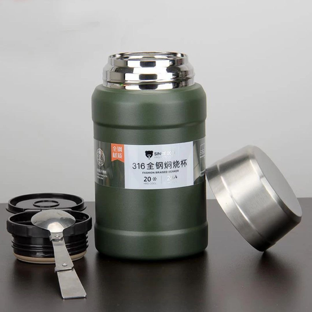 این ظرف با همراه داشتن قاشق داخلی، حمل و مصرف غذا را در محل کار، دانشگاه یا سفر بسیار ساده می‌کند. بعلاوه کیف عایق‌بندی‌شده آن کمک می‌کند تا دما و تازگی غذا برای ساعت‌های طولانی حفظ شود، بدون نیاز به یخچال یا گرم‌کن.