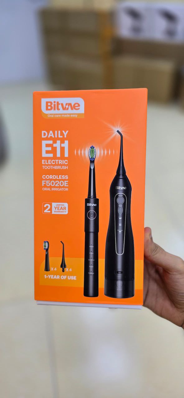 مسواک برقی E11 Bitvae با قابلیت واترجت، تجربه‌ای کامل برای بهداشت دهان و دندان ارائه می‌دهد. این دستگاه با عملکرد برقی و جریان آب، پلاک‌ها و ذرات باقی‌مانده غذا را به‌طور موثر پاک می‌کند. ویژگی کلیدی: ترکیب مسواک برقی و واترجت برای تمیزی جامع.